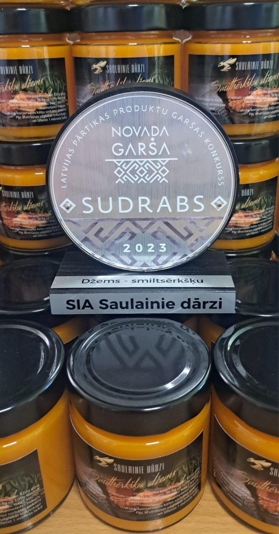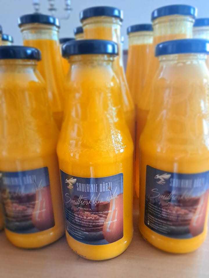The beginnings of this successful farm can be traced back to 2017, when Sandra and Edgars Baltiņi began growing sea buckthorn on their property in the Rēzekne region – initially on one hectare, but a year later, the plantings were expanded to almost two hectares. In 2020, they also turned to beekeeping, starting with one bee colony, which was increased to five in 2021. This led to the establishment of the family business Ltd "Saulainie dārzi", which today offers fresh berries with the opportunity to pick them yourself straight from the field, and products – juices, syrups, teas and honey products. The company's goal is to grow from a small home-based producer into a strong local manufacturer offering high-quality sea buckthorn and honey products.