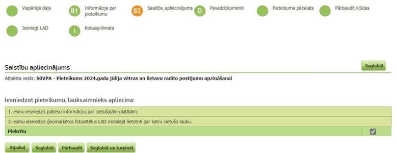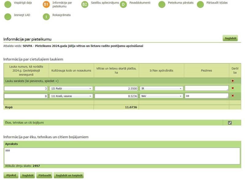 Pie pieteikuma ir jāpievieno fotoattēli ar ģeotelpisko lokāciju. Lauksaimnieki to var izdarīt, izmantojot LAD mobilās lietotnes autorizēto versiju.