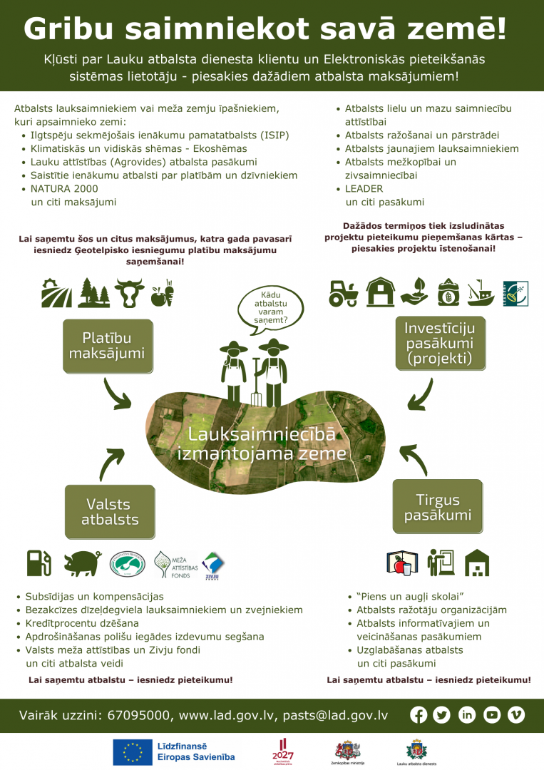 Platību maksājumus var saņemt lauksaimniecībā izmantojamās zemes vai meža zemes apsaimniekotāji, iesniedzot Vienoto iesniegumu elektroniskajā pieteikšanās sistēmā (EPS).