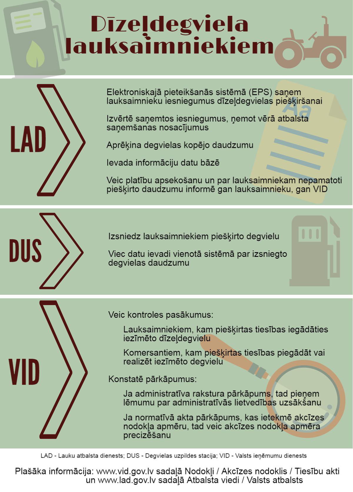 Dīzeļdegviela tiek piešķirta lauksaimniecības produkcijas ražotājiem izmantošanai tikai lauksaimniecības tehnikā – traktortehnikā un lauksaimniecības pašgājējmašīnās lauksaimniecības produkcijas ražošanai, kā arī kravas pašpārvadājumiem.