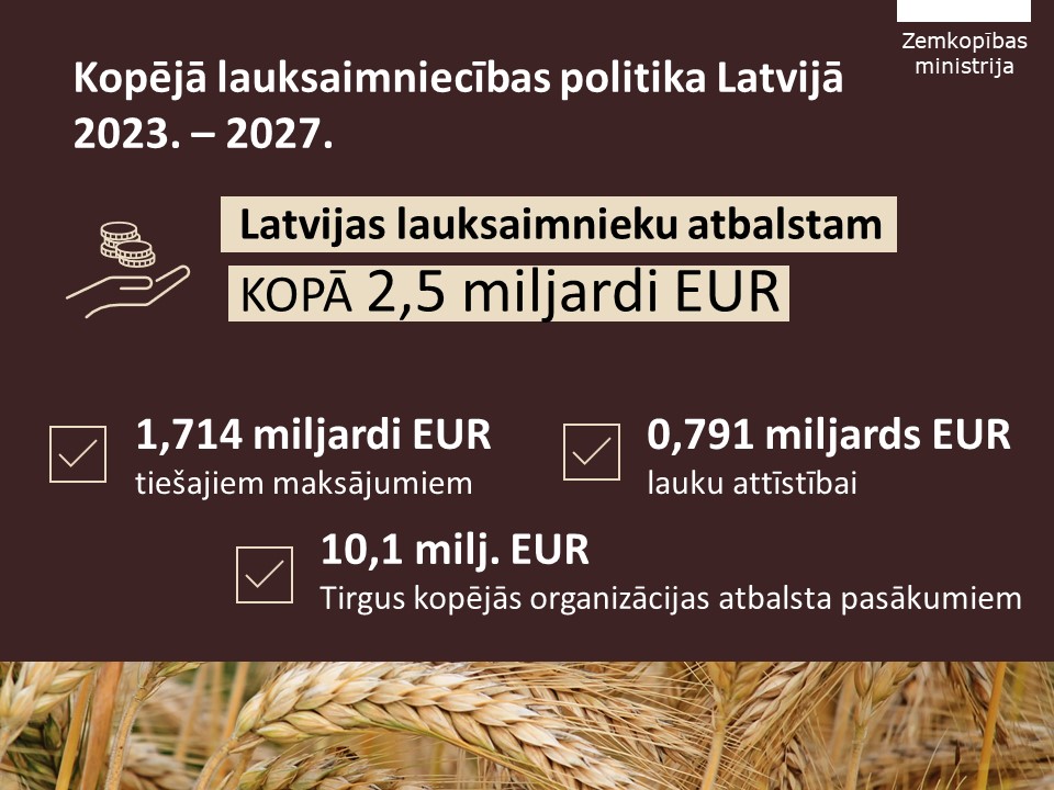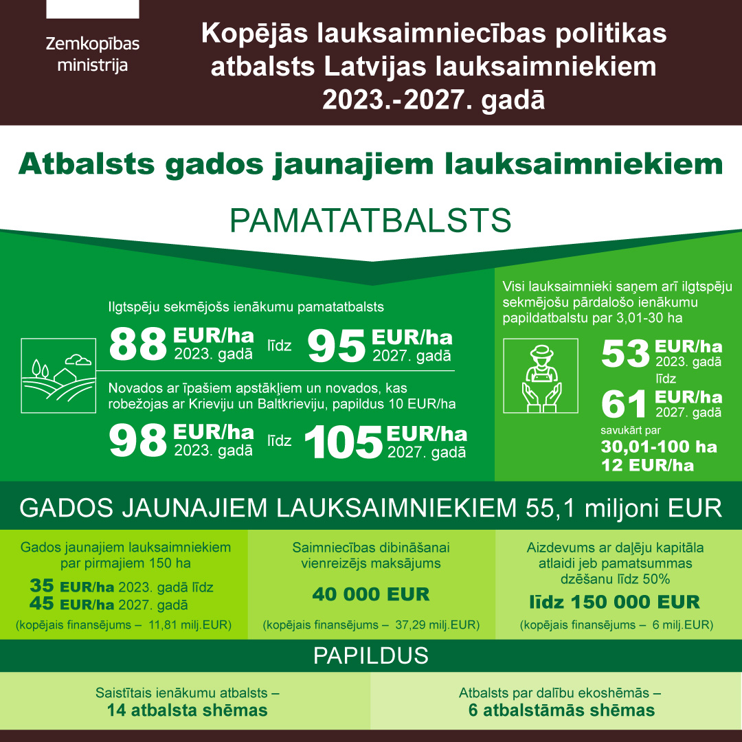 2023. gadā sāksies Eiropas Savienības Kopējās Lauksaimniecības politikas (KLP) jaunais posms un tiks īstenoti atbalsta pasākumi saskaņā ar Latvijas KLP stratēģiskā plāna nosacījumiem.