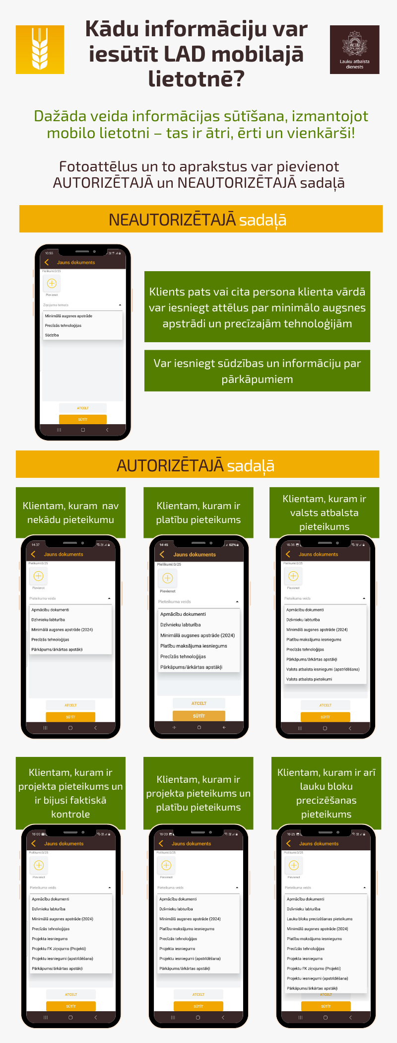 Lietotni var izmantot gan visi tie dienesta klienti, kuri izmanto LAD Elektronisko pieteikšanās sistēmu, gan neautorizētie lietotāji.